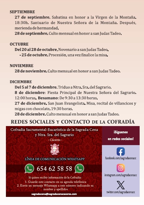 © Cofradía Sacramental - Eucarística de la Sagrada Cena y Nuestra Señora del Sagrario 2025