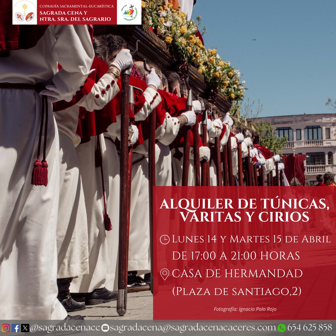 Calendario de alquiler de túnicas y entrega de varitas y cirios. Año 2025.
