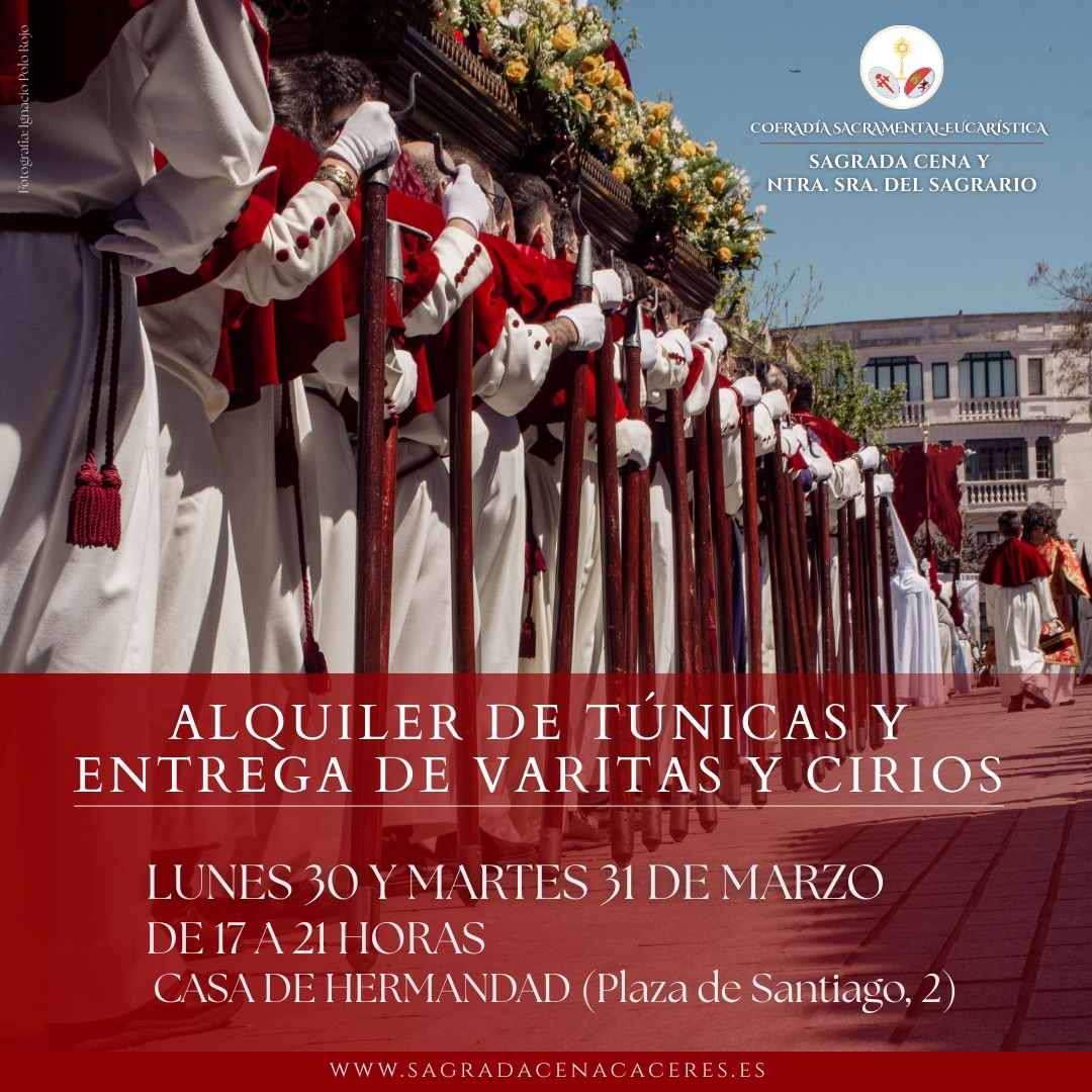 Calendario de alquiler de túnicas y entrega de varitas y cirios. Año 2026.