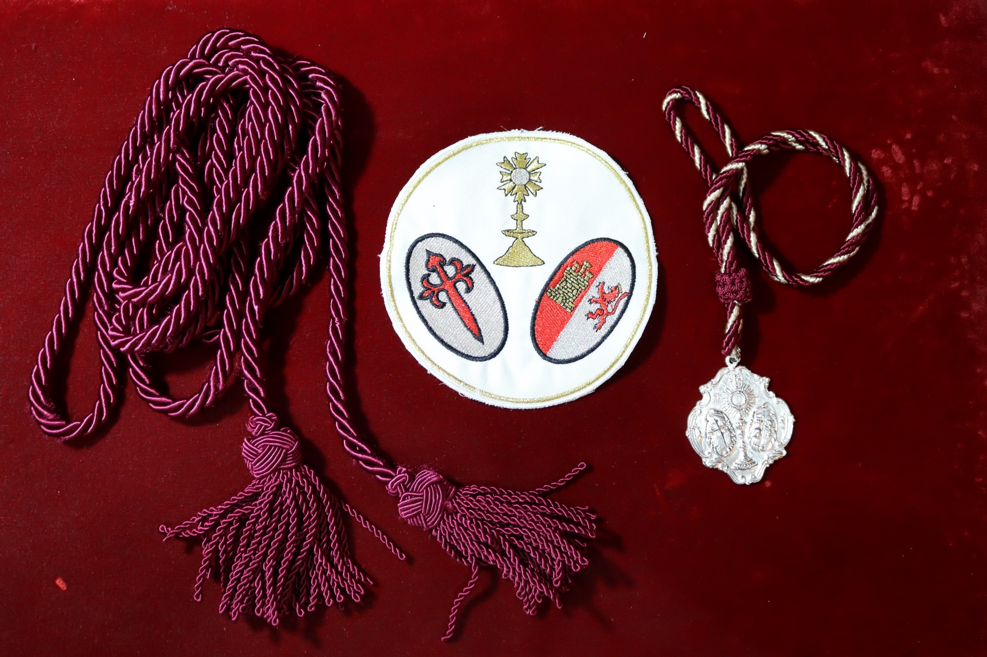 Podrás adquirir los complementos necesarios para vestir la túnica de la cofradía: el cíngulo, el escudo bordado y la medalla. Estos complementos también se encuentran disponibles todo el año en horario comercial en Mercería Maeva y en Alimentación Jiménez Martín.
